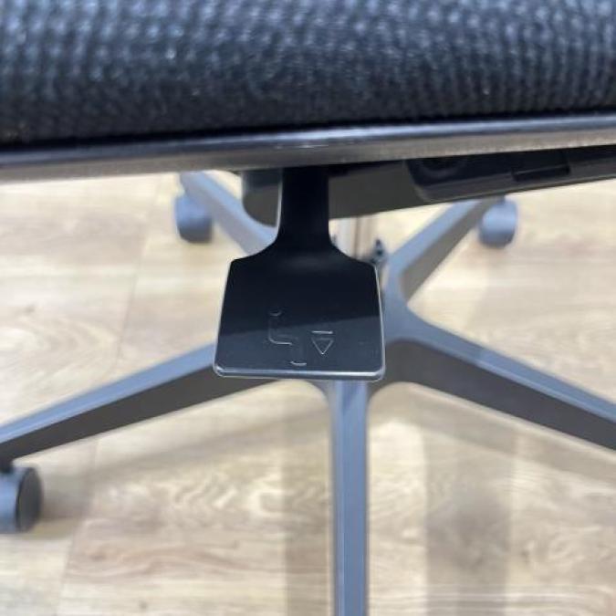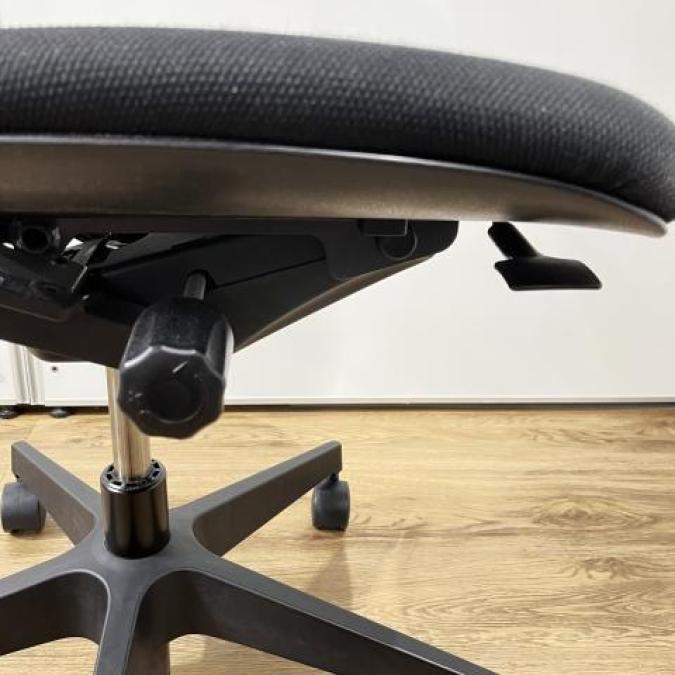 例えば、座面は、イトーキ独自の"ベンディングシート"という機構により、クッション、インターシェル、空洞という三層構造になっています。 この真ん中に挟まっているインナーシェルが、着座時の姿勢に合わせて体重を分散してくれるので、どんな姿勢でも体になじみ、疲労を軽減してくれます。 さらに、座面は前後に4センチほど奥行きを調整でき、前傾姿勢で座りたい、深く腰掛けたい、膝裏を圧迫されたくないなど、個人の好みに合った快適さにカスタマイズが可能となっています。