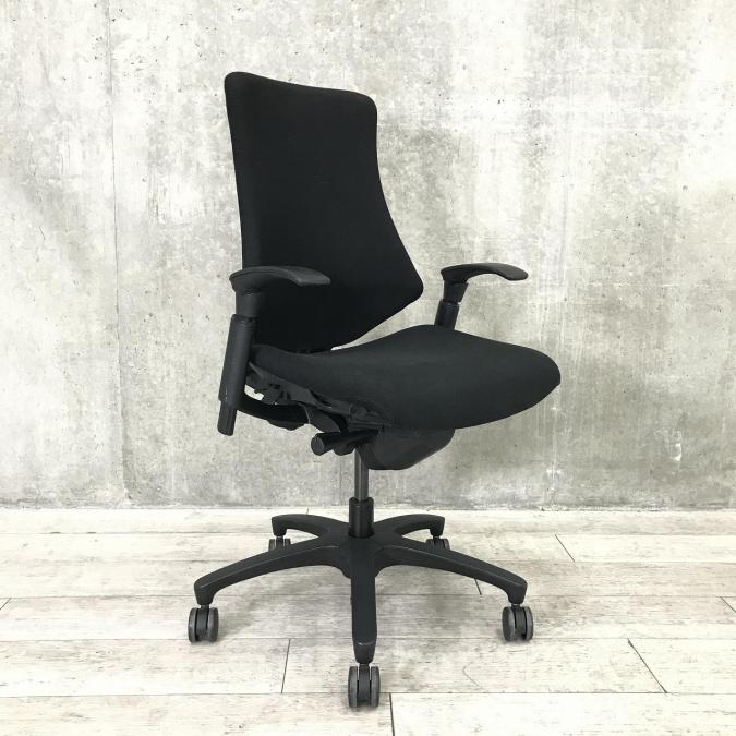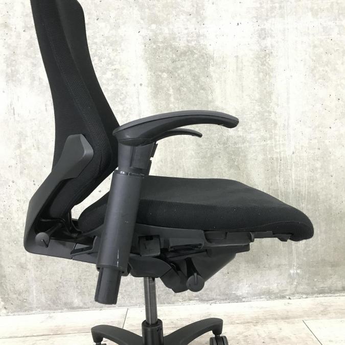 【三次元フォルムが腰にフィット!】希少なエラストマータイプ! ■イトーキ製 エフチェア 肘付 ブラック ハイバック ■姿勢の変化にフレキシブルに対応!