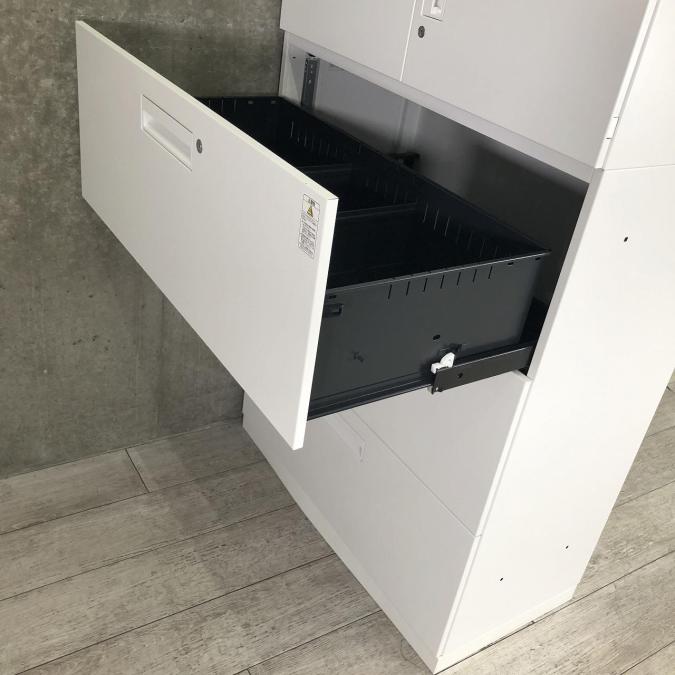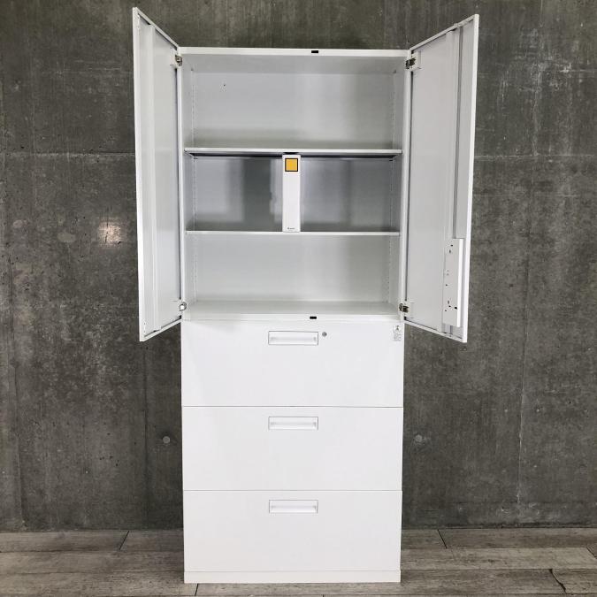 【収納量抜群の書庫セット!観音開き+引き出しタイプの人気の組み合わせ!】■コクヨ(KOKUYO)製 エディアシリーズ(EDIA) 両開き+3段ラテラル 書庫セット ハイキャビネット ■シリンダー錠 ■ホワイト