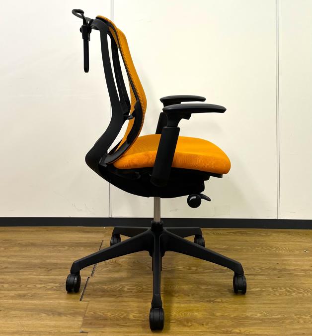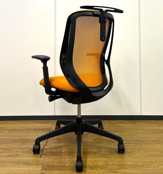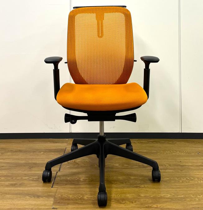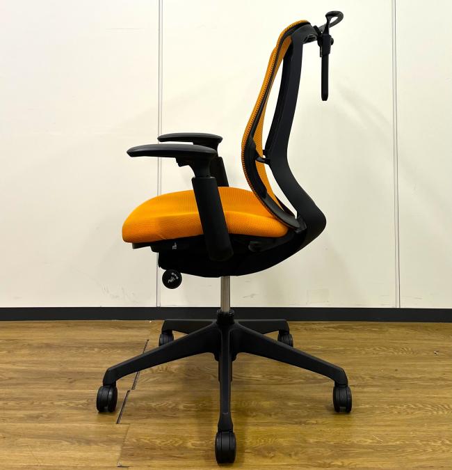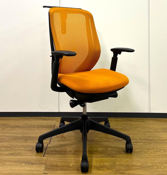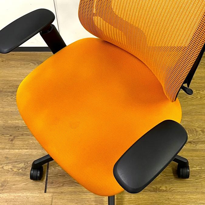 【珍しいオレンジ×ブラックフレーム入荷!】オカムラ シルフィメッシュ オレンジ ブラックフレーム 可動肘 ハンガー付- なんば日本橋店