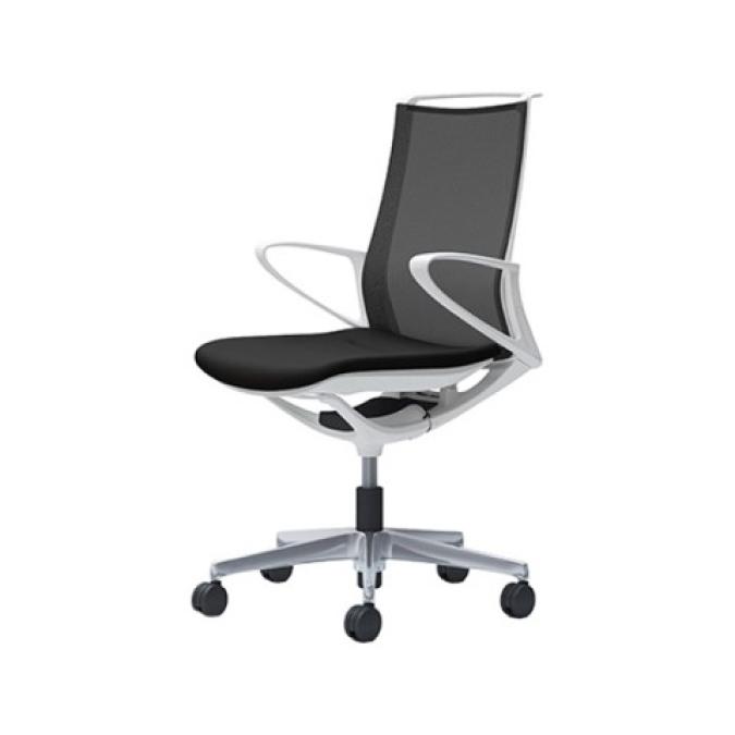 デザイン性と機能性を両立、硬さの異なる3種類のウレタンで長時間作業に適したオフィスチェアです。 ■モード/ミドル/可動肘/ホワイトボディ/5本脚/樹脂フレーム/ホワイトボディ/インターロッククロス