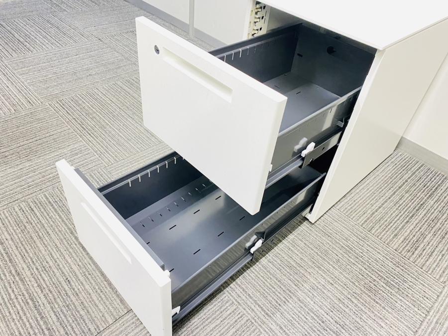 A4サイズのファイル書類が2段で収納可能なキャスター付きの引出し型キャビネット。
