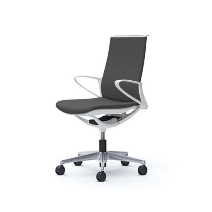 【在庫入替セール】オカムラ モード デザインアーム搭載 ミドルバック ブラック×アルミ脚 張地:クロス(プレーン) 高いデザイン性×シンプルかつ操作性のある機能