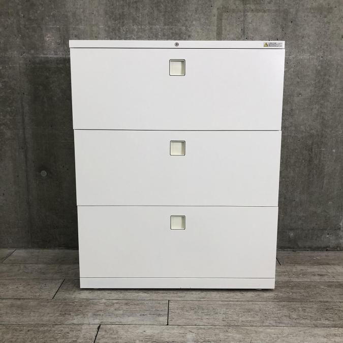 【ファイル収納にオススメ!高品質で使いやすい人気シリーズの3段ラテラル書庫!】■オカムラ(okamura)製 レクトラインシリーズ 3段ラテラル書庫 ローキャビネット H1100㎜ ■ホワイト ■シリンダー鍵 ■天板付き(天板:ホワイト) ※日焼け有