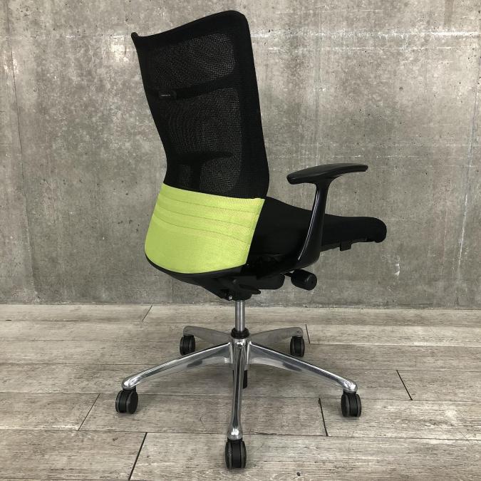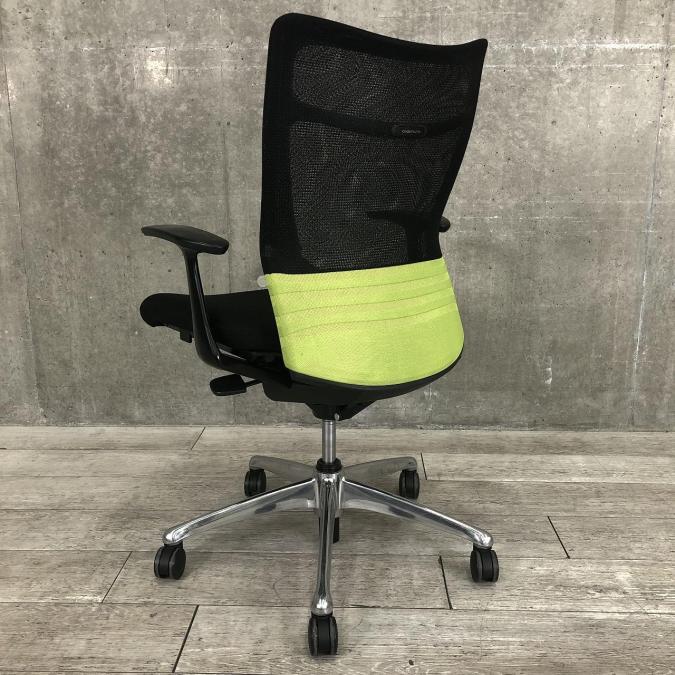 【背あてのしなやかな曲線が背中にフィット!】【快適な座り心地に高級感のあるデザインが人気!】■オカムラ(okamura)製 フィーゴ(feego)チェア ■メッシュバックタイプ ■固定肘付き ■色:ライムグリーン×ブラック【弊社使用欄: A00923602】- 在庫数