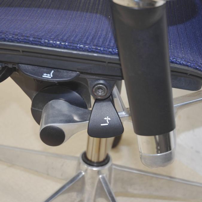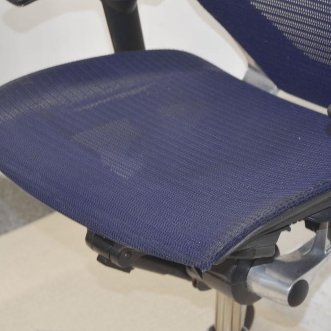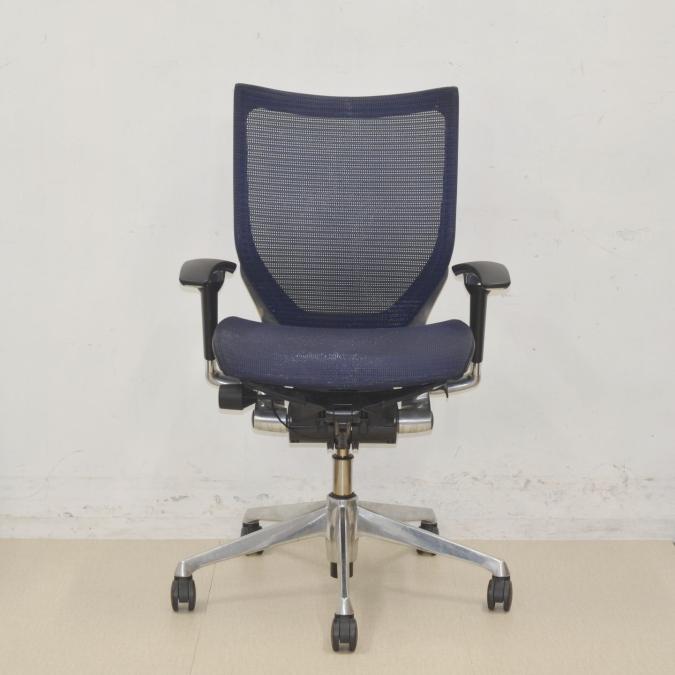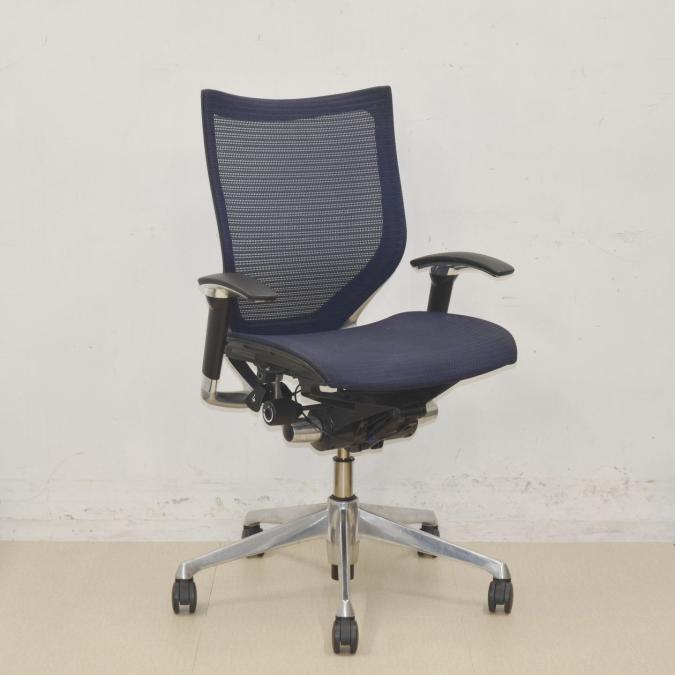 【座面が大人気!国産メッシュチェアの代表格!】■オカムラ(okamura)製 バロン(Baron)チェア ローバック 肘付き ■背面メッシュ ■固定肘 ■色:ダークブルー ■ハンガー付き