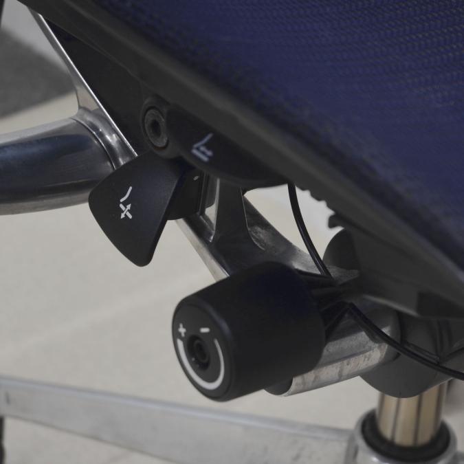 - 座面の右下にあるレバーの操作により座面位置を上下に100mm分調整することが可能です。