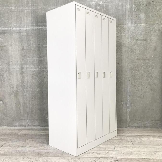 【コート類も入る縦長ロッカー!】オカムラ FZ 5人用 更衣用ロッカー ライトスモーク(ニューグレー) シリンダー錠 【取っ手日焼け・キズありのためお安く!】- 足立・葛飾店