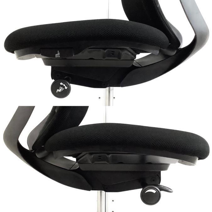 - 座面右下のダイヤル操作で、リクライニングの強弱調整が行えます。これまでのダイヤル式よりも、少ない回転数で、最弱?最強の調整が可能です。