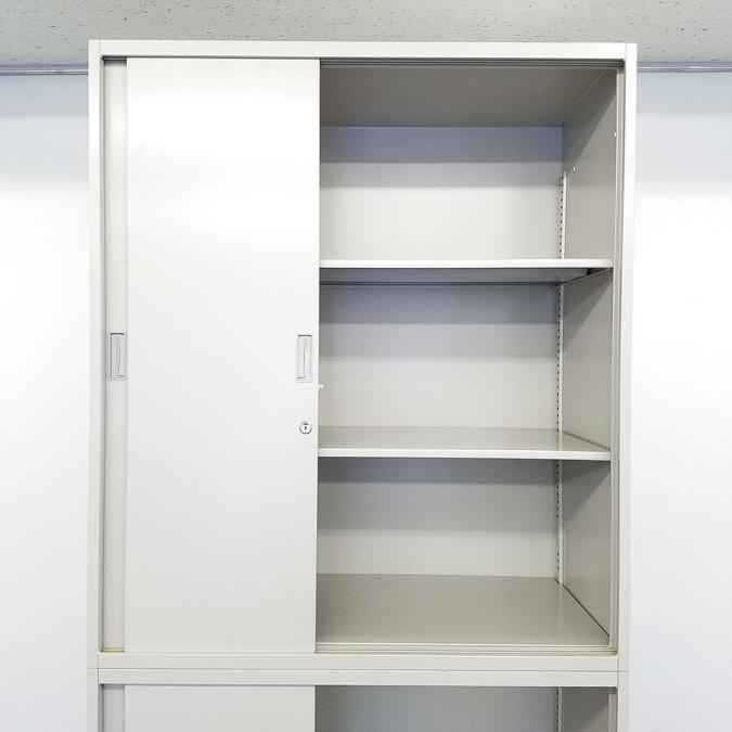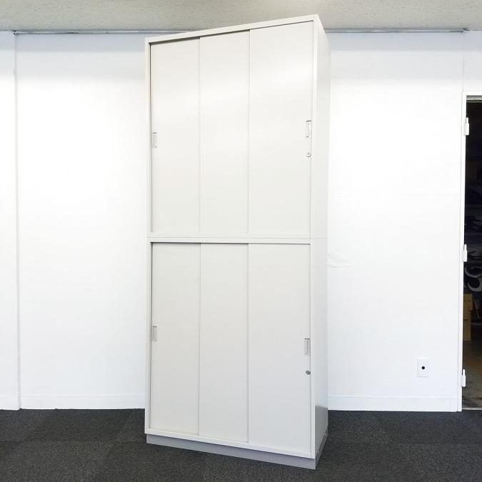 【4セット限定】【3枚引き違い扉なので開閉スペースがいりません!省スペース化に貢献!】■イトーキ(ITOKI)製 シンライン (THIN LINE)シリーズ 上下引き違い書庫セット 3枚扉 ハイキャビネット ■ニューグレー ■シリンダー錠