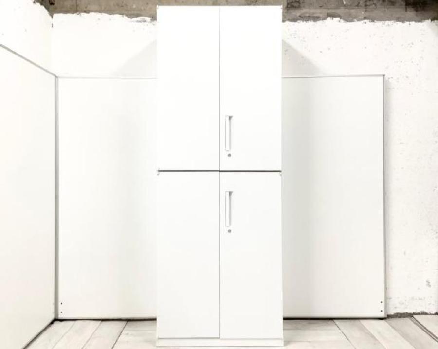 【ロットで入荷!】大人気ホワイト色が待望の入荷! ◆内田洋行 HSシリーズ 上下書庫セット / 下:両開き / 上:両開き / ホワイト / 収納 / 書棚 / 中古- 茨城南店