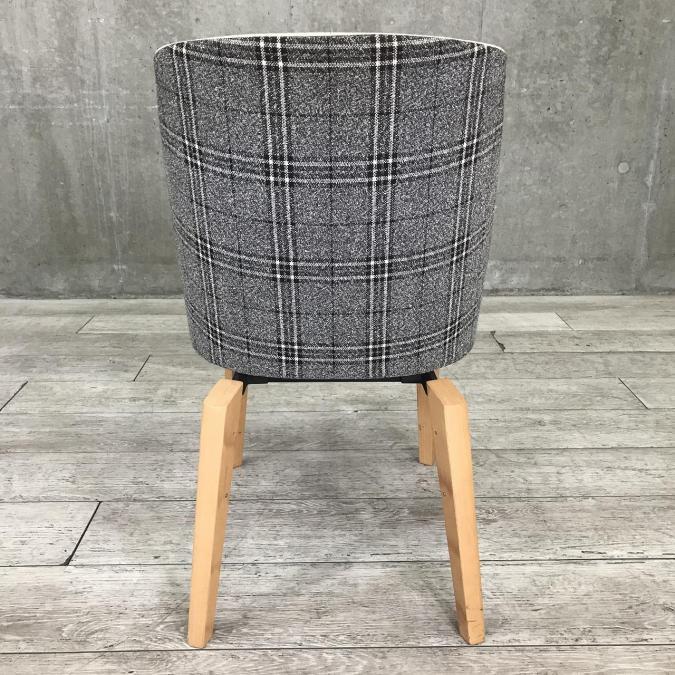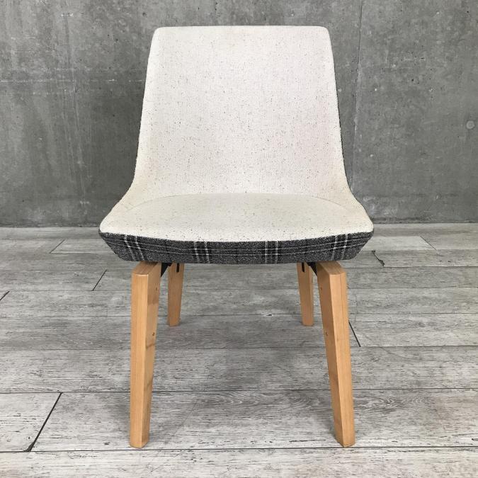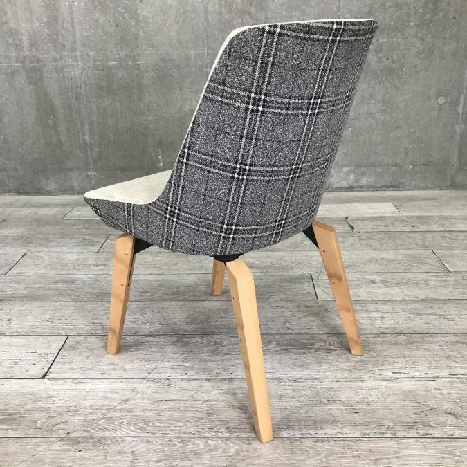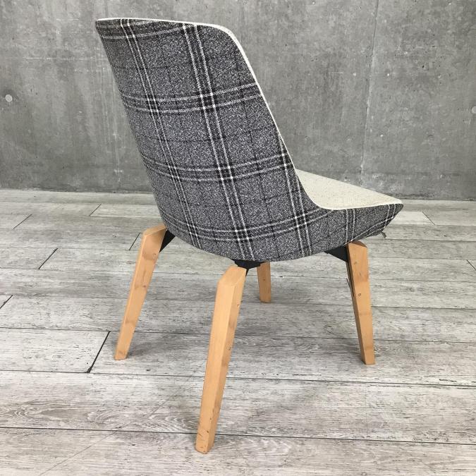 ナチュラルの脚と、内側と外側で異なるデザインのヴィンテージテイストの張地がおしゃれなチェアです。