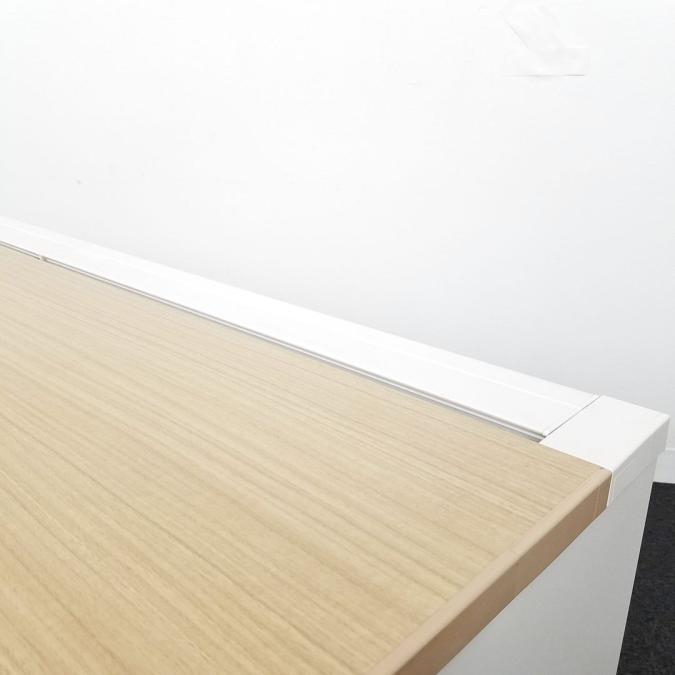 - シャープであらゆるオフィスに調和するシンプルなデザイン。天板は、ホワイト色と木目2色から選べます。