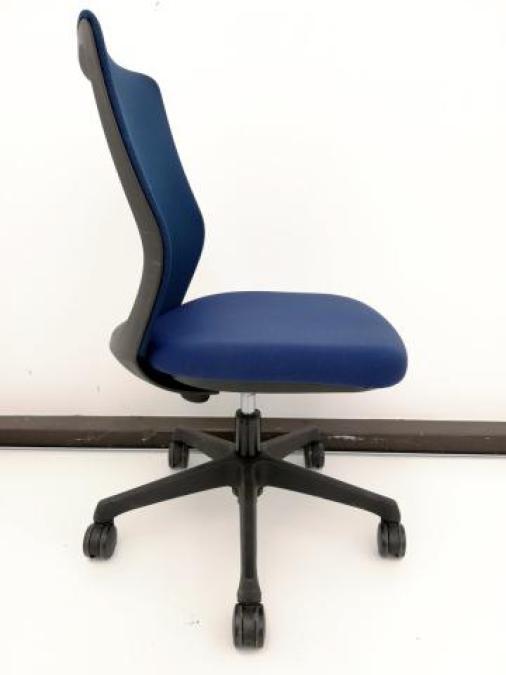 入替セール品につきお値下げ!【コンパクトなサイズ感!腰への負担を減らすS字形状!】■オカムラ(okamura)製 CG-Mチェア 肘無し ローバックチェア ■背面メッシュ ■ミディアムブルー