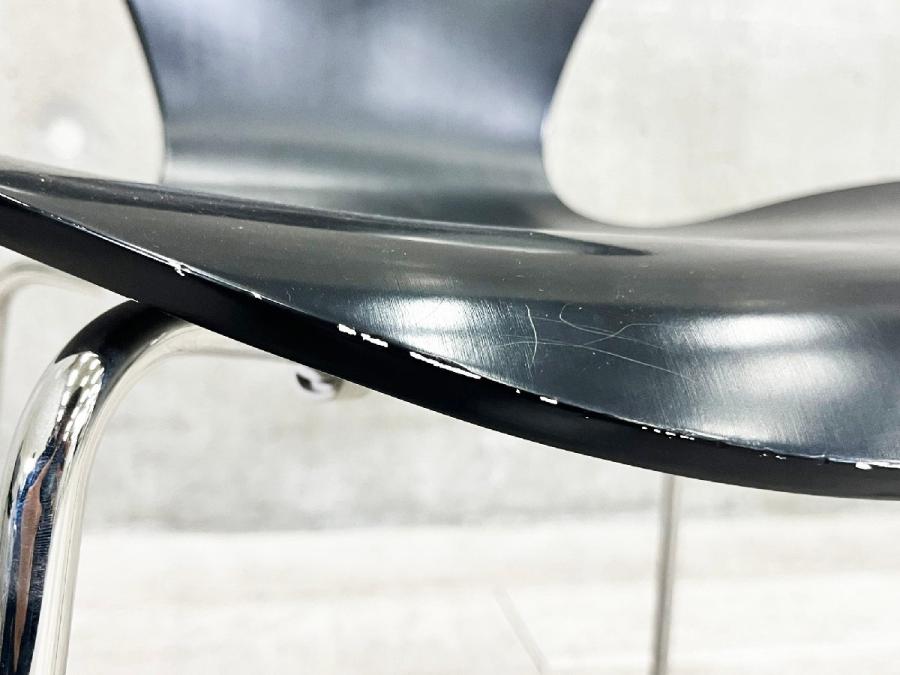 北欧家具の代名詞『フリッツハンセン』社の『セブンチェア』です。 ラミネート技術の集大成ともいえる成形合板のシェルとスタッキング可能な4本脚のベースを組み合わせています