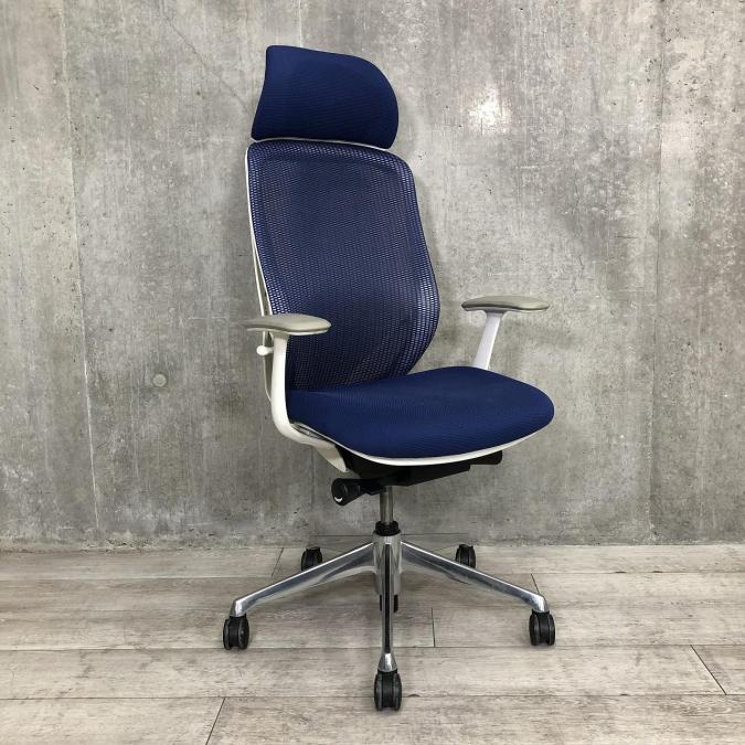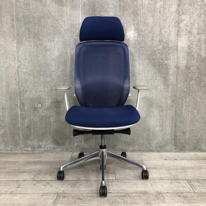 【新品ヘッドレスト交換済み】オカムラ/シルフィー/ブルー/可動肘