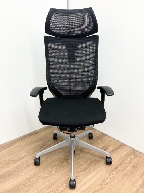 【オフィスの執務室、会議室におすすめ!】■オカムラ(okamura)製 バロン(Baron)チェア 肘付き ハイバック ■背・座面メッシュ ■可動肘 ■ヘッドレスト付き ■ブラック【硬めの座面が大人気!国産メッシュチェアの代表格!】