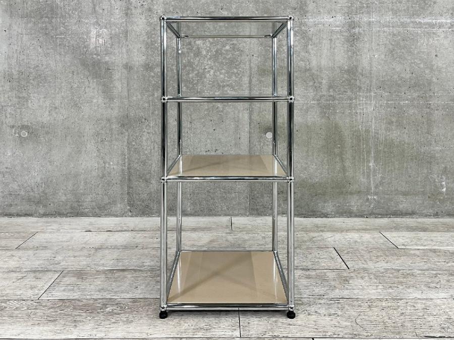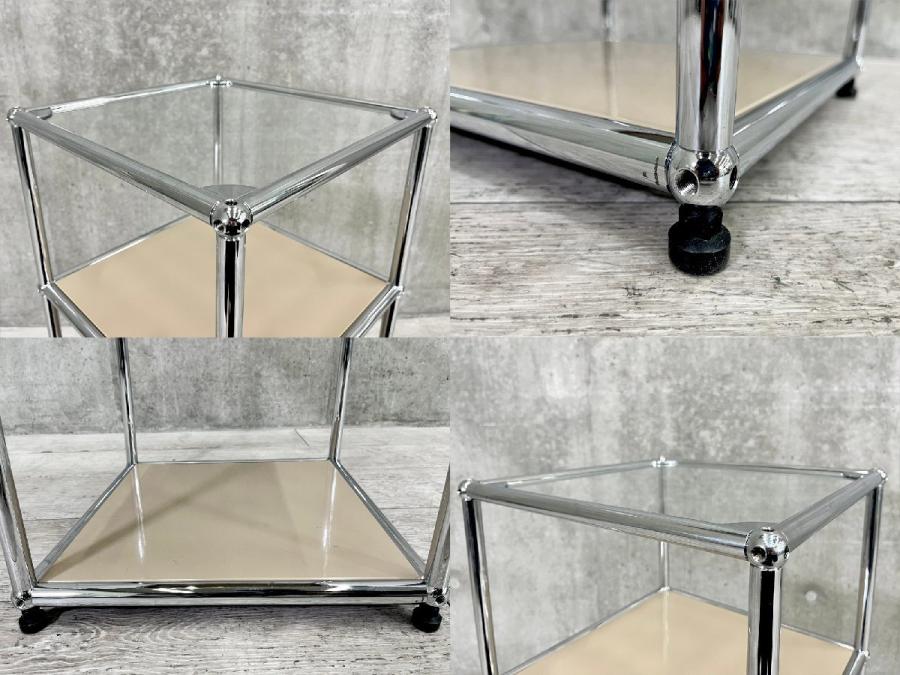 USMハラー 1連3段 電話台/花台 ガラスXベージュ OPOPOP- デザイナーズ家具センター