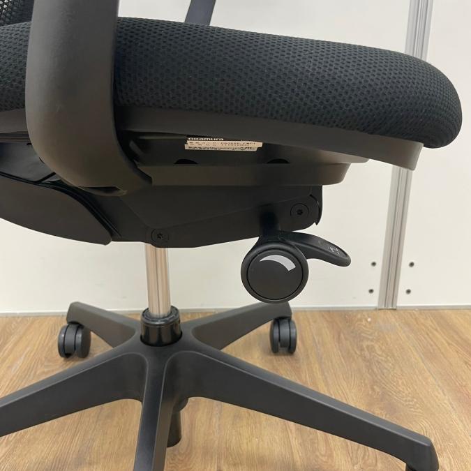 【前傾チルト機能付き】【オカムラ製品で最も人気を集める高機能メッシュチェア!】■オカムラ(okamura)製 シルフィ(Sylphy)チェア 肘付き ハイバック 背面メッシュ ■固定肘・ハンガー付 ■ブラック ※スレ有