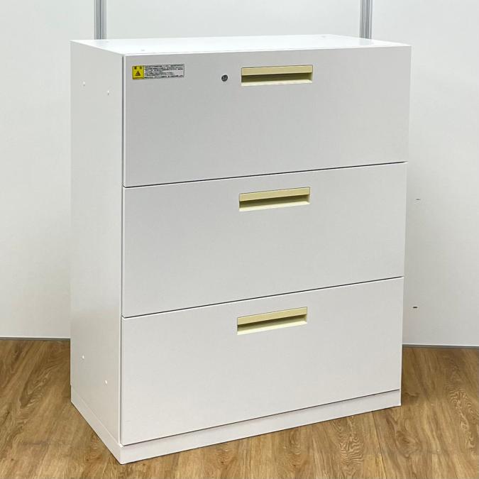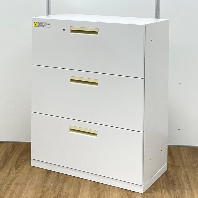 【訳あり品:目立つ把手日焼けあり】【商品入替のため】ウチダ製 HSシリーズ ホワイトカラー 3段ラテラル書庫!!- 京都東寺店