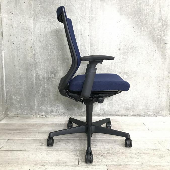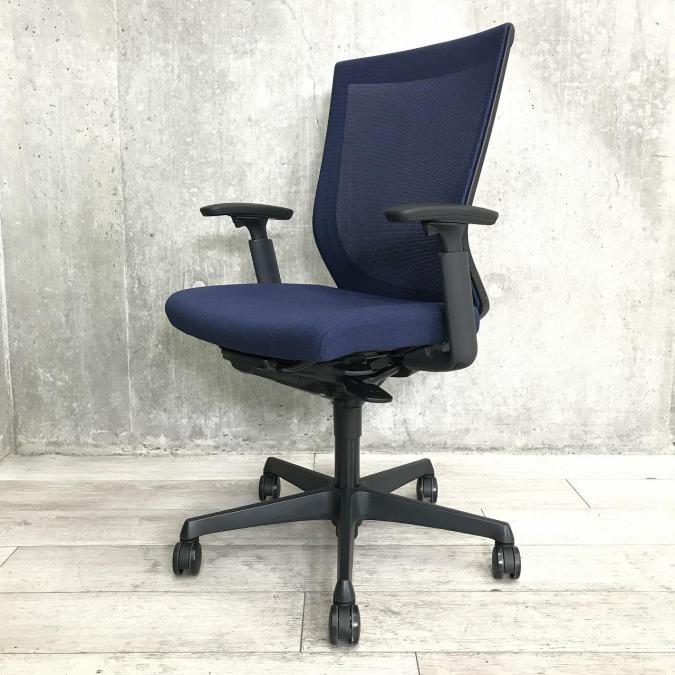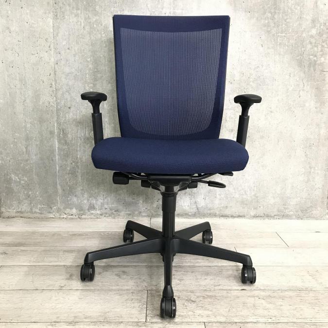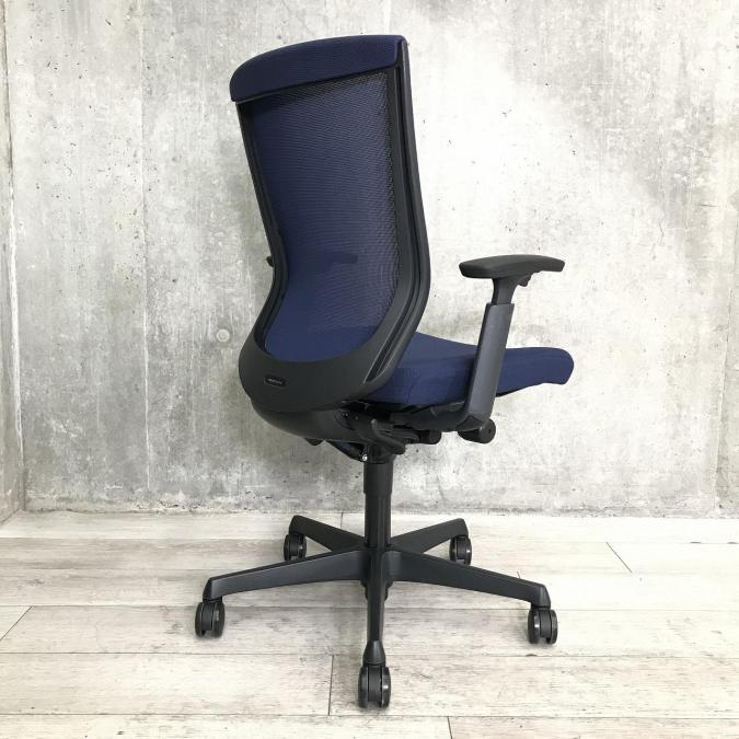 【長時間のデスクワークもランバーが快適にサポート!】【背中全体をサポートするハイバックタイプのメッシュチェア!】 ■okamura(オカムラ)製 エスクードチェア ハイバック ■可動肘付き ■色:ダークブルー×ブラック【弊社使用欄:A00920317】サーキュラーバリューCO2削減量の算出について