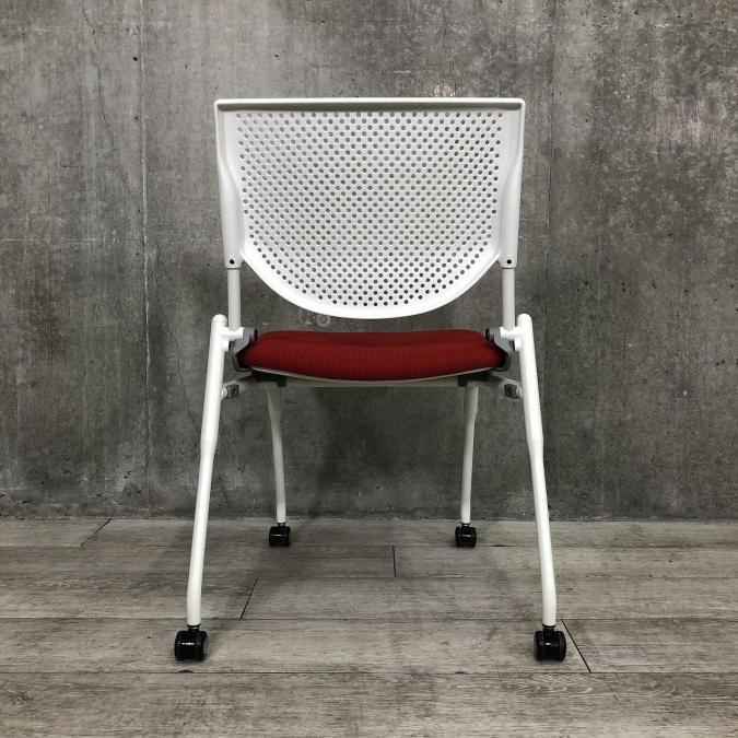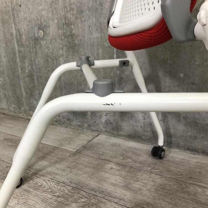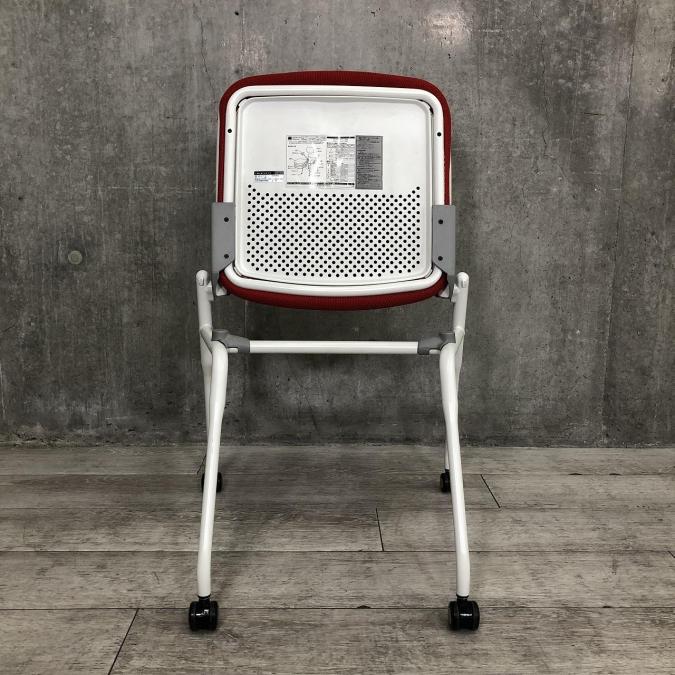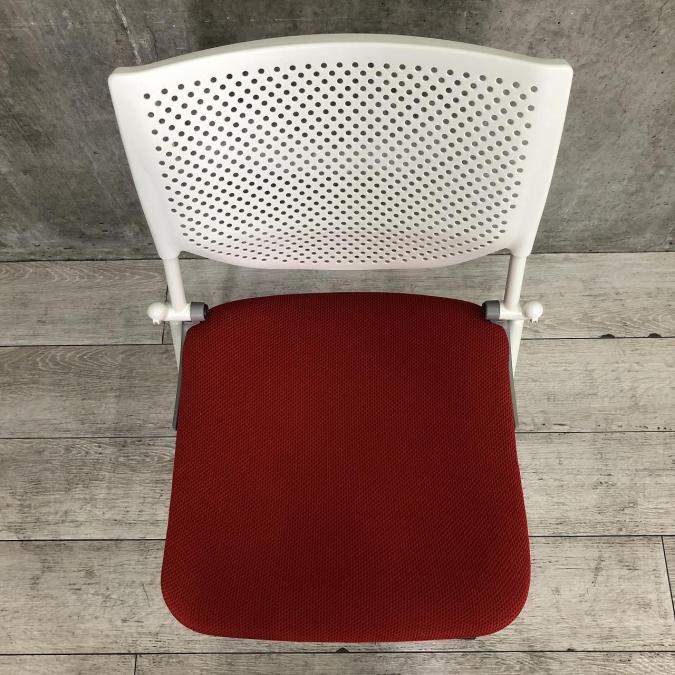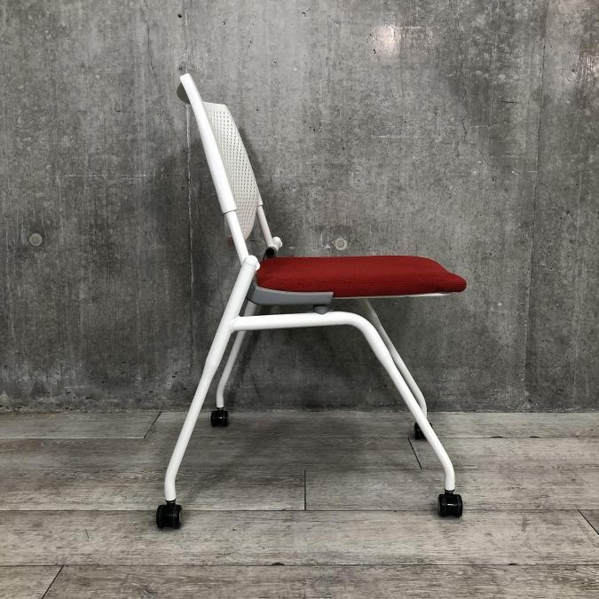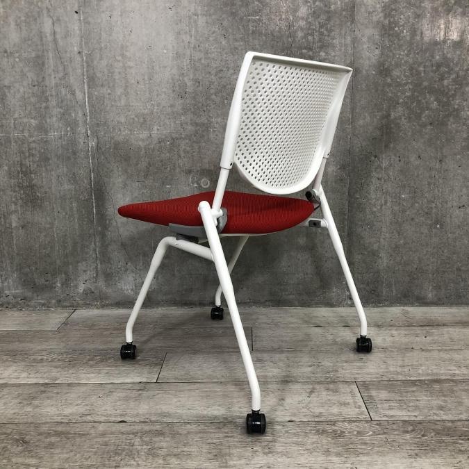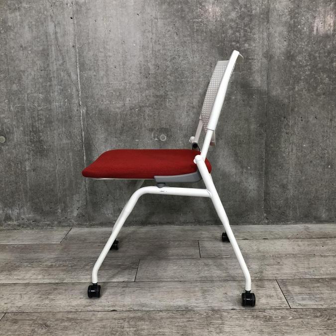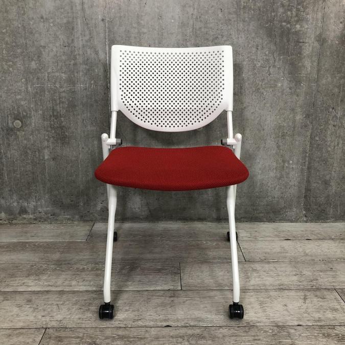 【会議用におすすめ!】オカムラ製 プロスタック ミーティングチェア ネスティングチェア ホワイト×レッド 【数が揃います!】- 足立・葛飾店