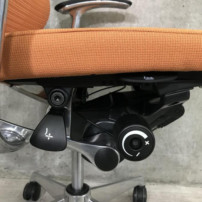 もちろん座り心地もコンテッサの直系ですから快適です。座面の素材はクッションとメッシュの2タイプあります。私、個人的には座面の中心部分でも外側でもテンションが変わらないクッション素材が、足を閉じても開いても快適なので推しです!"