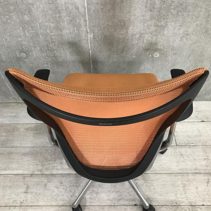 発売当時、既に人気を博していたオカムラの高級チェア、コンテッサから手元で座高調整ができるスマートオペレーション機能を取り除くなどしてリーズナブルにしたのがバロンです。その際に少しだけコンパクト化されました。そのことが、日本人の体格、日本のオフィス、家庭環境に適し、国内で多くのシェアを獲得する要因の一つになったのではないかと思います。