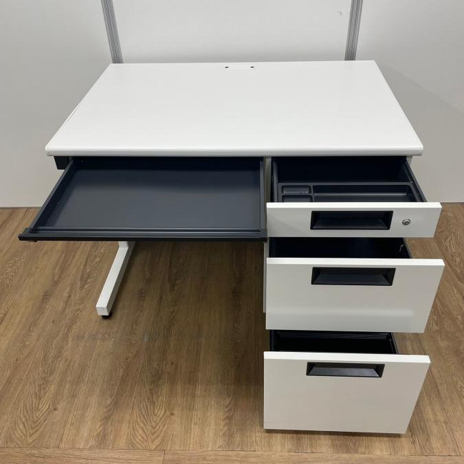 【状態良好:23年度製】プラス製 フラットラインシリーズ ホワイトカラー W1000サイズ 大人気の定番デスク 片袖机!!※現物画像※- 京都東寺店