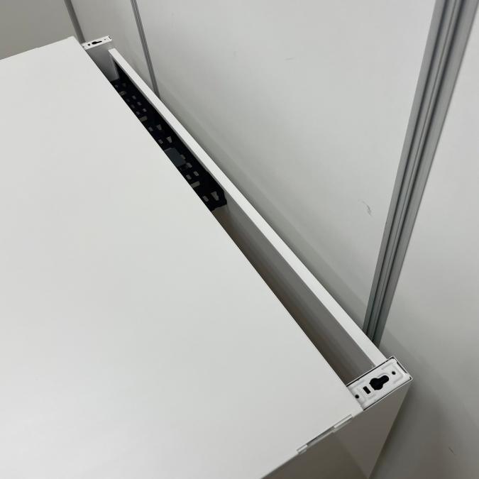 - 対向配線も横配線も自在なケーブリングが可能。幕板内側に余長ケーブルやOAタップを収納できる配線ダクトを標準装備。