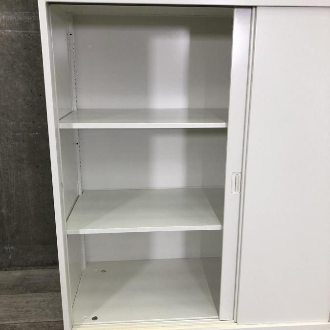 【スライド引き戸だから開閉スペースいらず!人気の書庫セット!】■オカムラ(okamura)製 レクトライン 上下引き違い 書庫セット ■ホワイト ■シリンダー錠 【弊社使用欄:A01035184/A01035183】