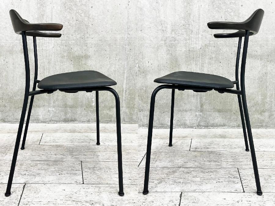 背と座部分の無垢材とベースのスチール素材による異素材のコントラストが大変美しいアイテムです。
