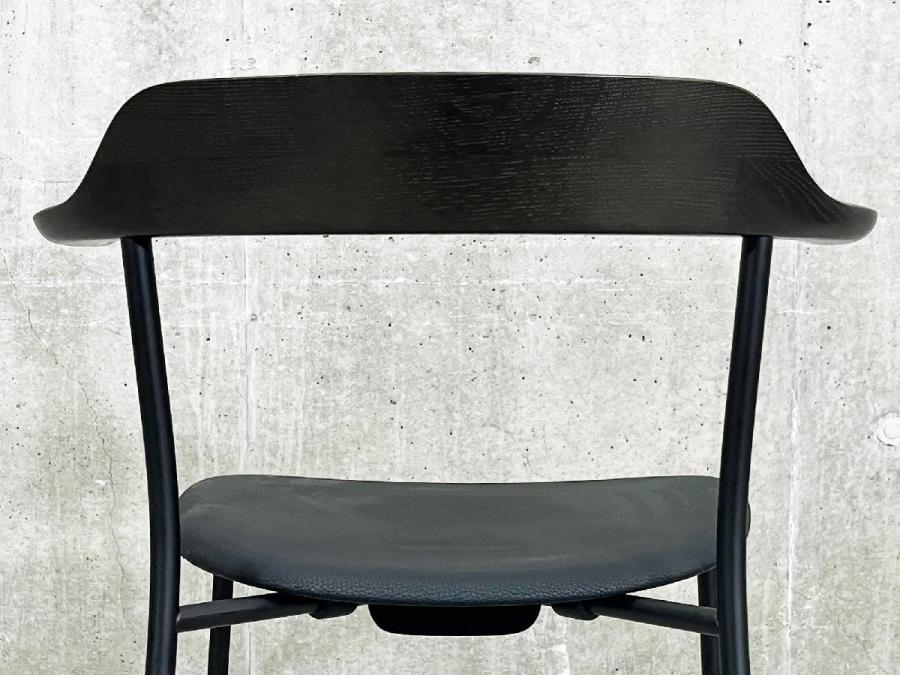 背と座部分の無垢材とベースのスチール素材による異素材のコントラストが大変美しいアイテムです。