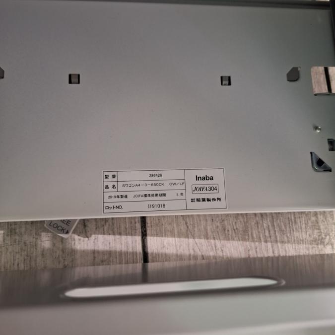 - 一部不具合ありその脇机・ワゴンの本来の効用を果たすための機能以外の一部が使用不可な状態。(例、引出が開閉しづらい、 キャスターロック機能使用不可、ラッチ不良 等がある。)