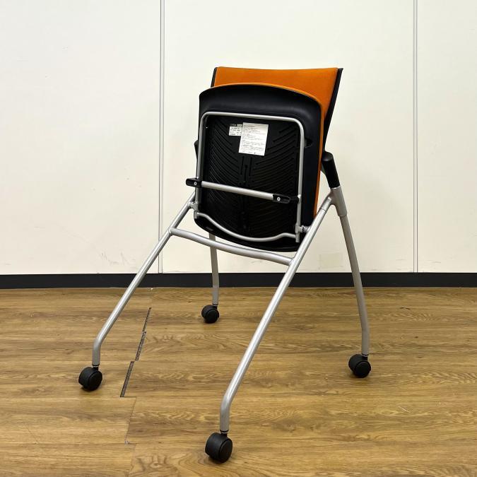 【定価約6万円】【重ねて収納可能!スペースの削減におすすめなネスティングチェア!】■イトーキ/マノス ■ネスティングチェア ■オレンジ