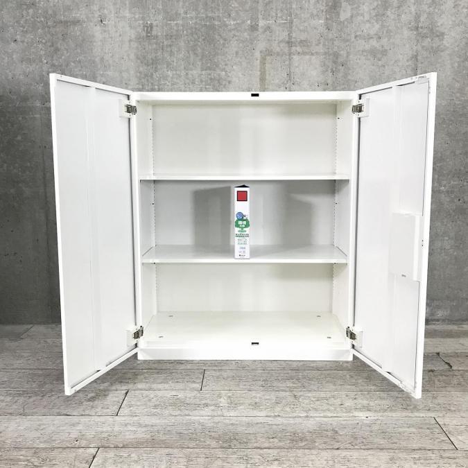 人気のホワイト色、観音開き扉タイプの書庫です。