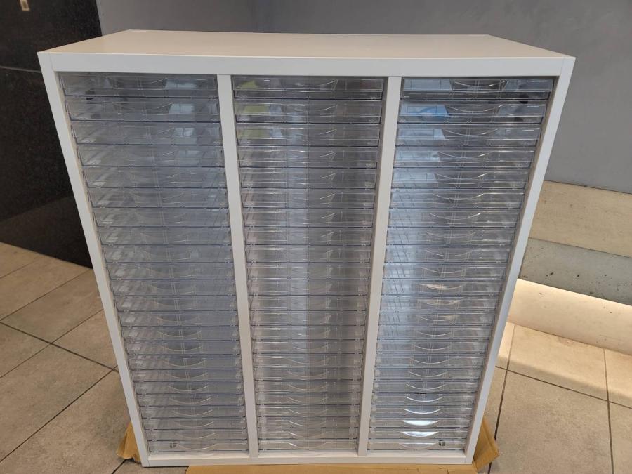 【新古品】【神田店在庫限り限定品】書類整理の強い味方!貴重なクリスタルトレーが入荷!浅型3列23段【生興/QUWALLシリーズ】【弊社使用欄:A90600047】新古