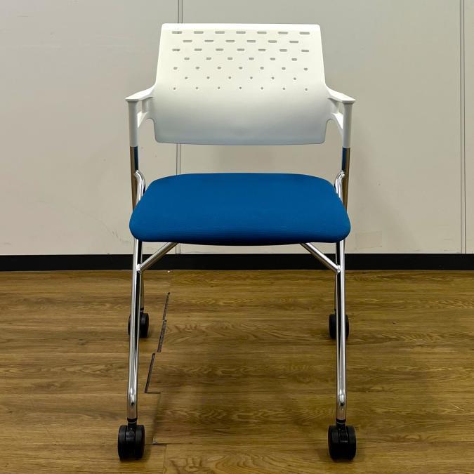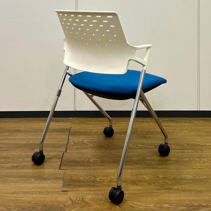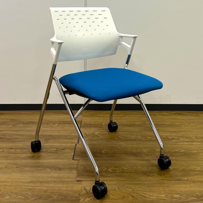 【4脚セット販売!】ネスティングチェア コクヨ ピエガ 背樹脂タイプ 座面:ターコイズ(淡いブルー) 背面:ホワイト- 池袋店