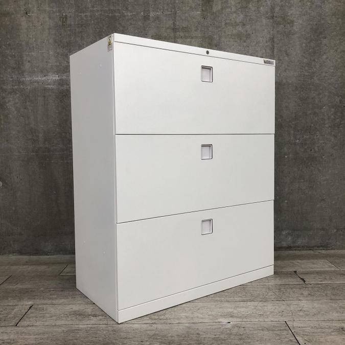 【オフィスの必需品!大容量の三段キャビネット!】■オカムラ(okamura)製 レクトラインシリーズ 3段ラテラル ローキャビネット ■ベース付 ■シリンダー錠 ■ホワイト 【弊社使用欄:A01037187】