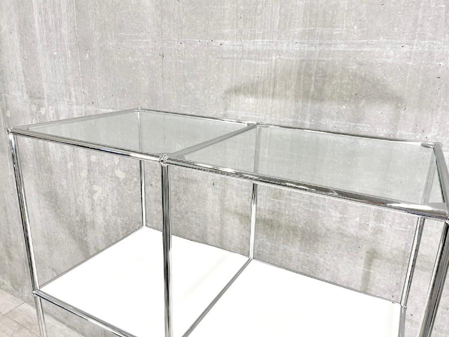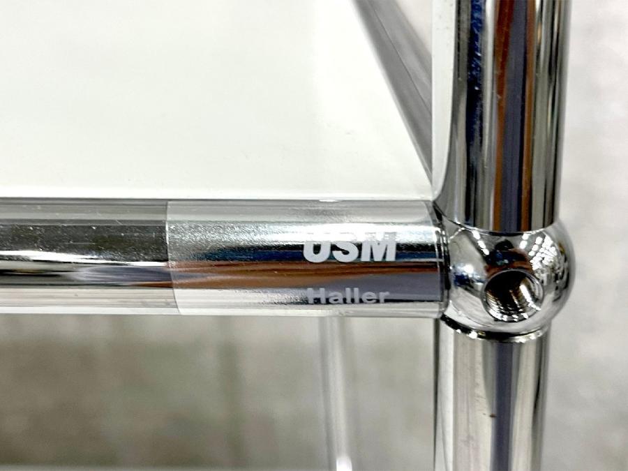USMハラー 1連1段 脚付きキャビネット/ナイトテーブル ピュアホワイト D500 ガラストップ
