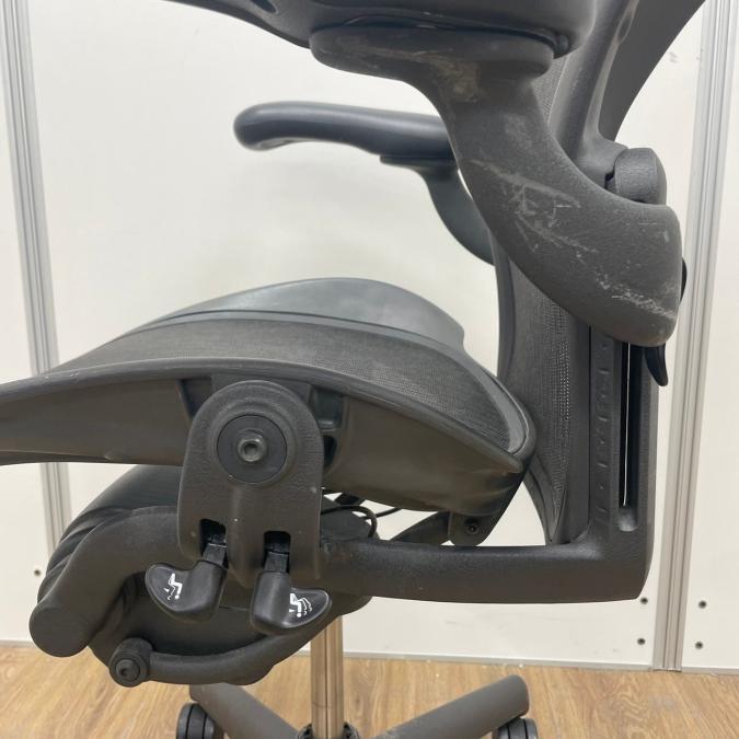 ※状態イマイチのためお安く! ■ハーマンミラー製 アーロンチェア Bサイズ スタンダード 可動肘 ランバーサポート無 【訳あり商品】※キズあり・昇降ガス弱めあり