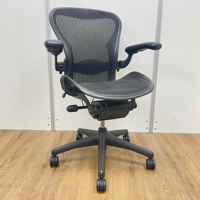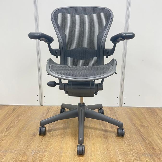 【★肘と脚にスレあり!見た目を気にしなければ使用に問題なし★】ハーマンミラー製 アーロンチェア(スタンダードタイプ) メッシュ 在宅 自宅 ゲーム 海外製 椅子 リラックス 中古家具 中古オフィス 九州最大級《オフィスバスターズ福岡博多店は、福岡を拠点として、日本全国へ中古オフィス用品・オフィス家具を提供しております》