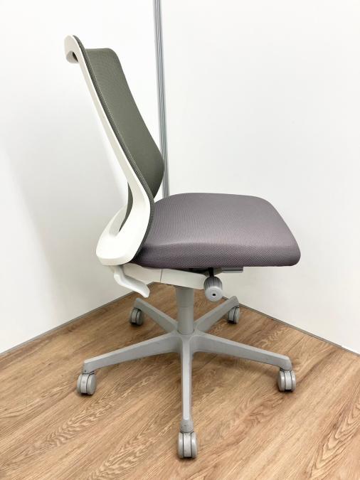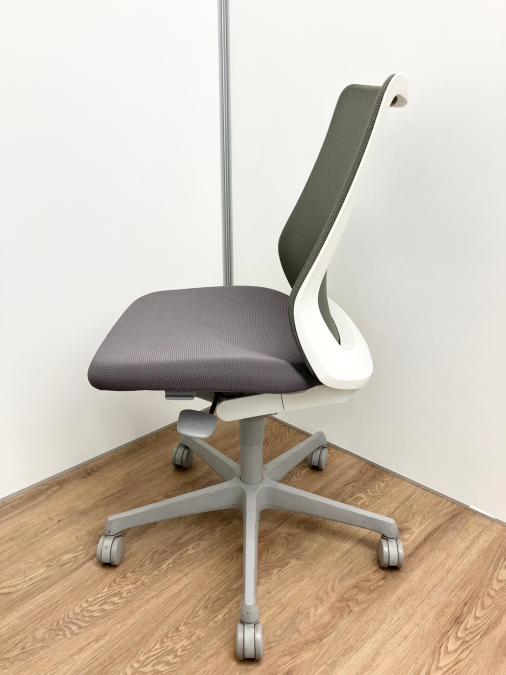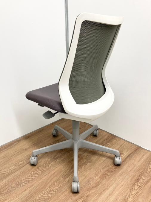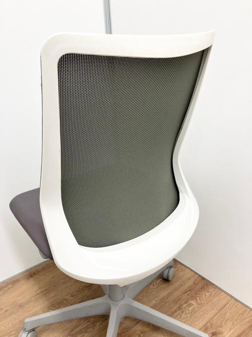【在庫入替セール】オカムラ フルーエント 肘無しローバックモデル 背メッシュ ミディアムグレー×ホワイトフレーム