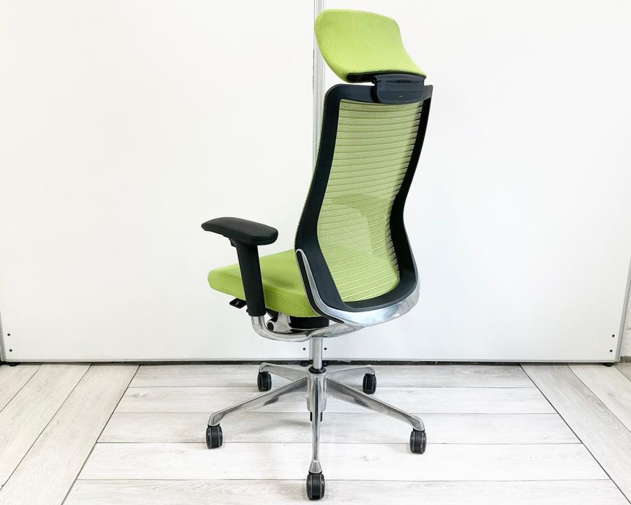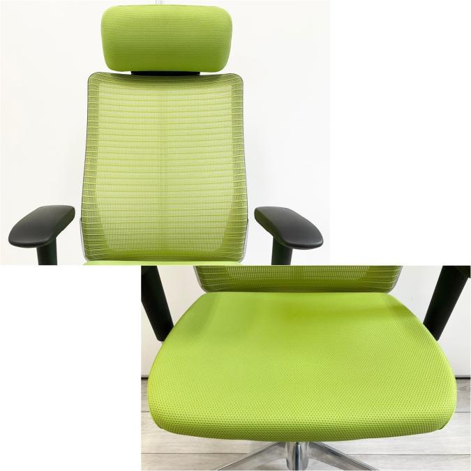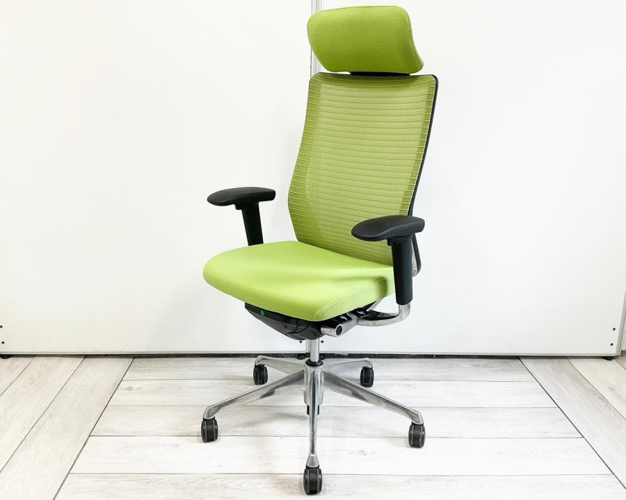 【ヘッドレスト付きならコレ!厚めのクッションで快適な座り心地を実現!】■オカムラ(okamura)製 コーラル(choral)チェア ■エクストラハイバック ■ヘッドレスト付き ■背メッシュ ■グリーン ■デザインアーム〈岐阜・愛知・三重・静岡・福井〉