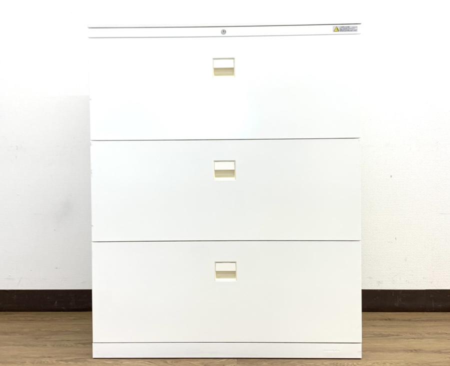 【4台入荷】まっしろホワイトキャビネット⇒3Sシリーズ3段ラテラル仕様◆オカムラ製【TH】- 埼玉本店