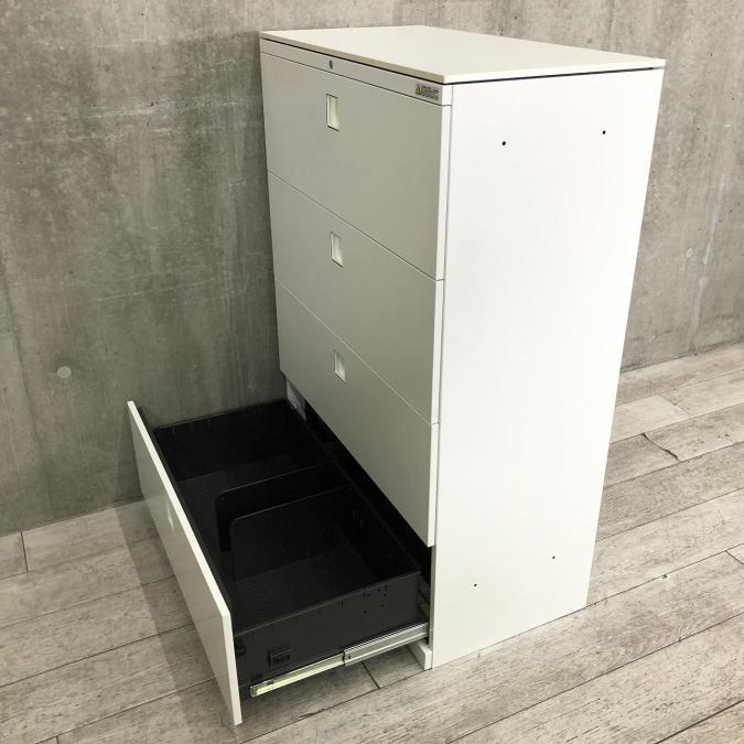 【高品質で使いやすい!上下左右から開閉操作できる!】■オカムラ レクトラインシリーズ 3段ラテラル書庫 ホワイト天板付 ■ファイル収納にオススメ!引出し型キャビネット【Okamura Rectline】