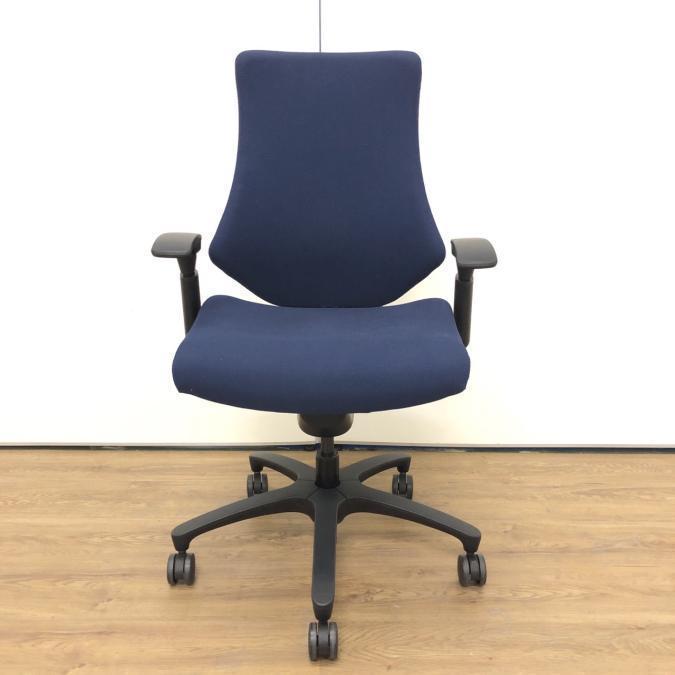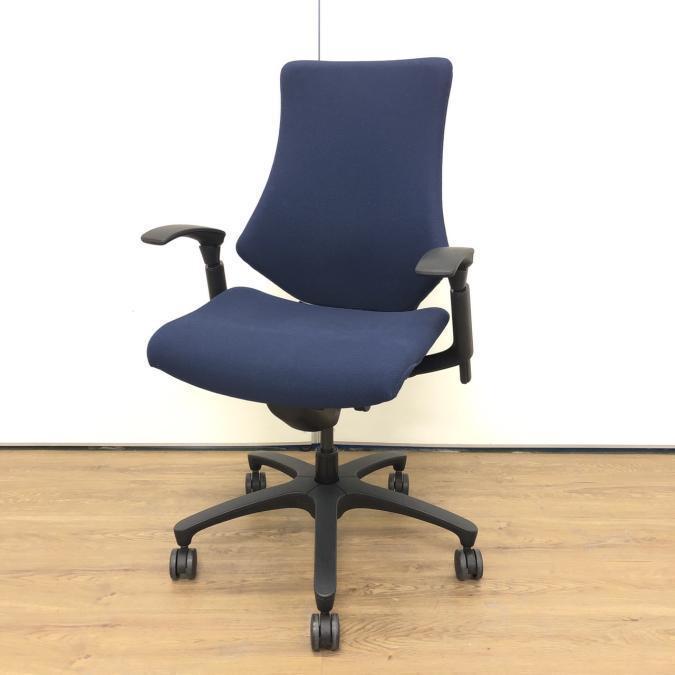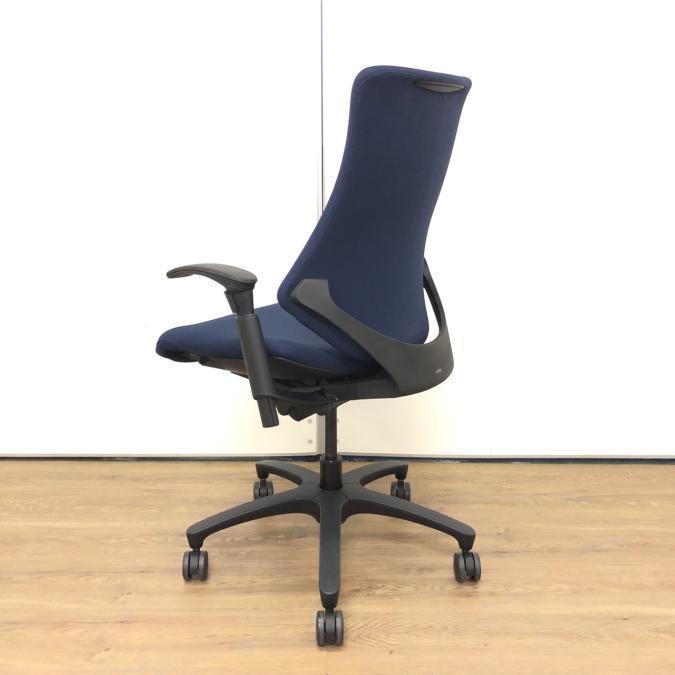 【包み込まれるフィット感!】 ■イトーキ製 エフチェア 肘付 ネイビーブルー ■デスクワークの疲労を軽減!