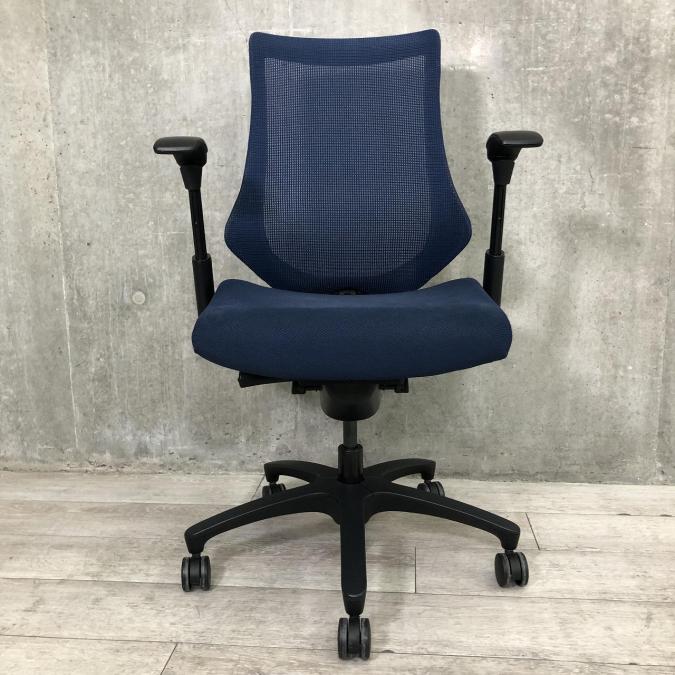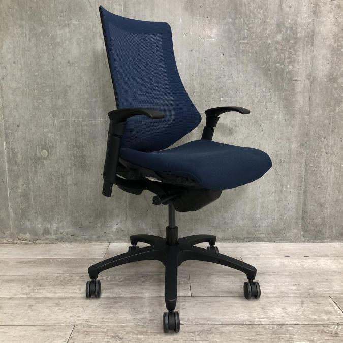 【最先端のデザインに快適な座り心地!】■イトーキ製 エフチェア 可動肘付 ネイビーブルー ■三次元フォルムが腰にフィット!【在庫入替セール品(本在庫限定価格)】