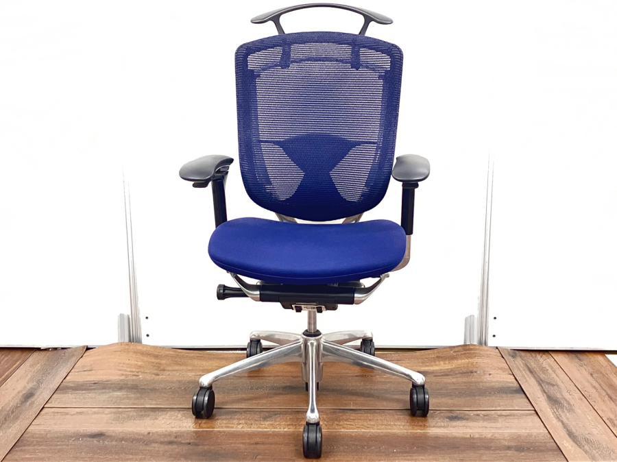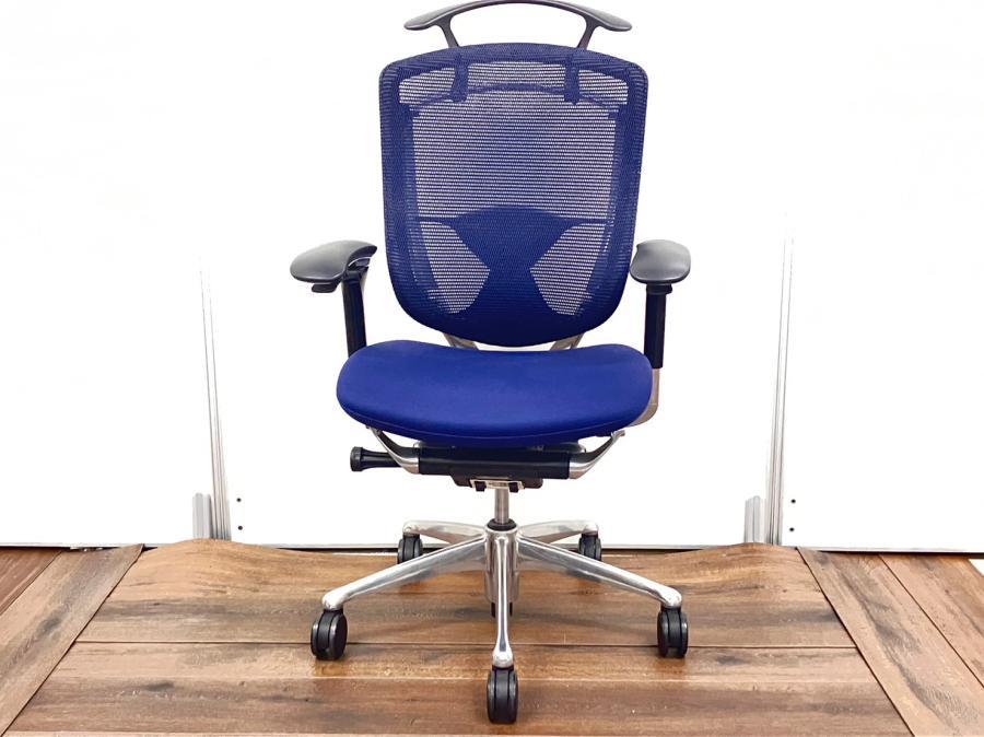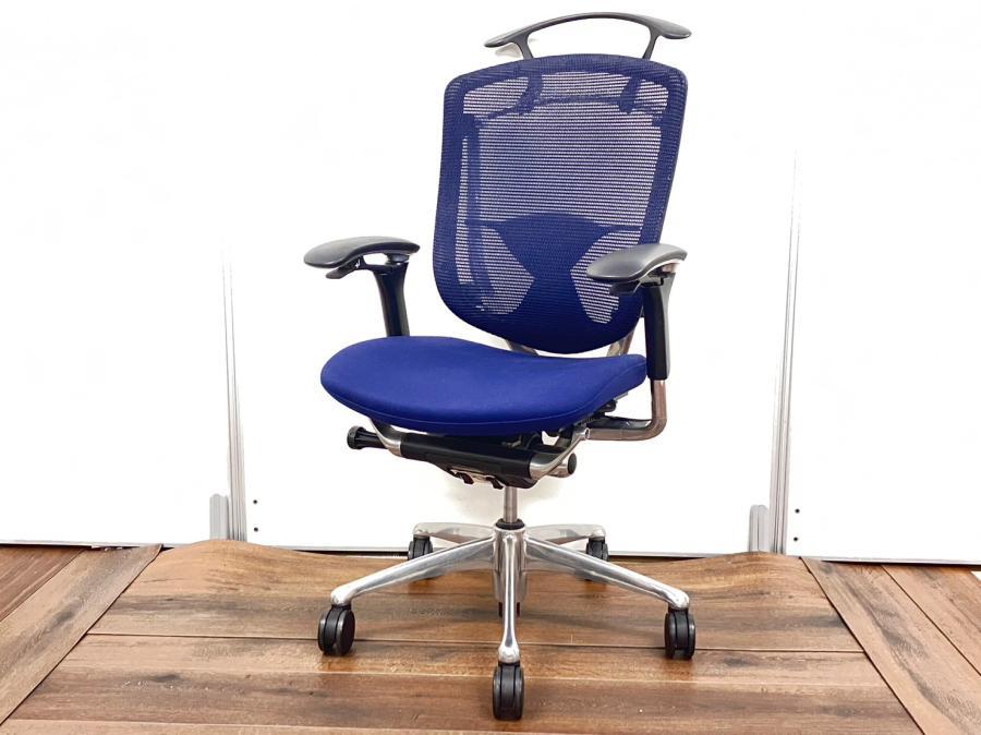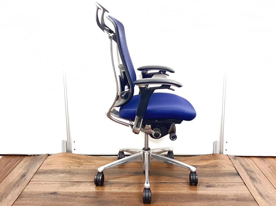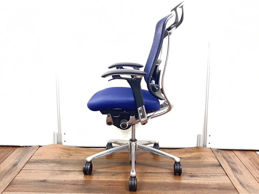 【オカムラ製の最高級チェアが残り1脚限りです!!】オフィスバスターズ 東大阪店 オカムラ製 コンテッサ シリーズ ダークブルー アジャストアーム※可動肘 背/座面メッシュ ランバー 世界で認められた革新的タスクチェア!人間工学に基づいた快適な座り心地を実現! 肘付きハイバックチェア!! 中古 外部倉庫品