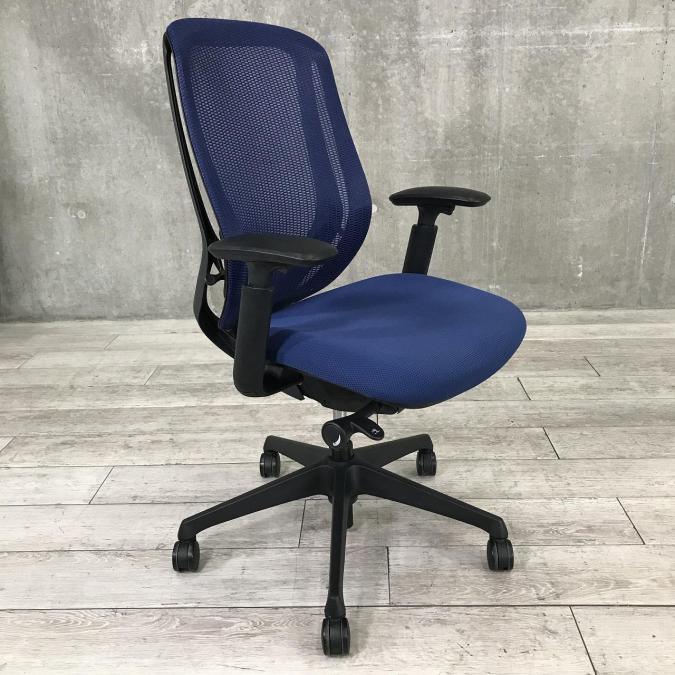 【新品ヘッドレスト交換済み】オカムラ/シルフィー/ブルー/可動肘
